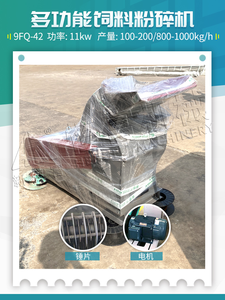 可粉碎玉米、豆粕等谷物类,还可粉碎秸秆、干草等粗纤维类物料。 加厚耐磨锤片,使用寿命更长。