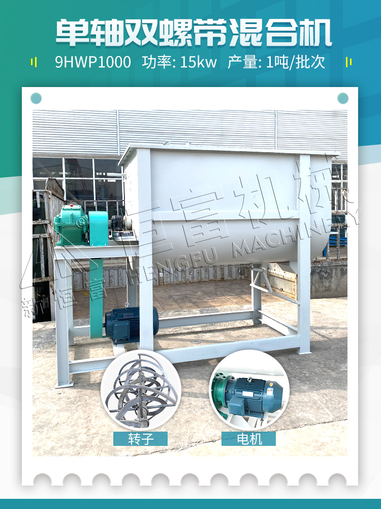 混合均匀度≥93%,混合时间3-6分钟一批次料。 广泛适用于化工、食品、复合肥、塑料、医药、饲料等行业的物料混合。
