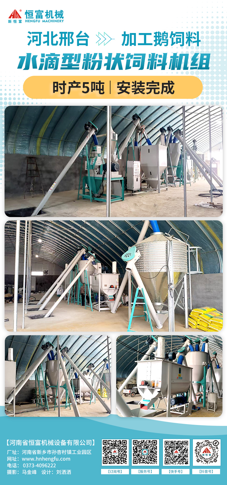 河北邢台鹅饲料加工客户,时产 3-5 吨粉状饲料加工机组安装完成。