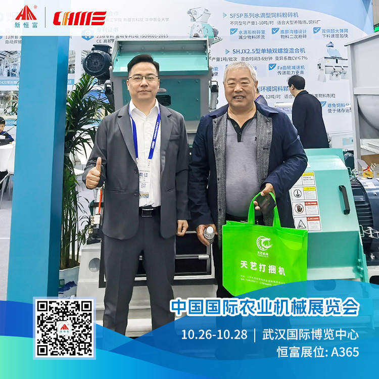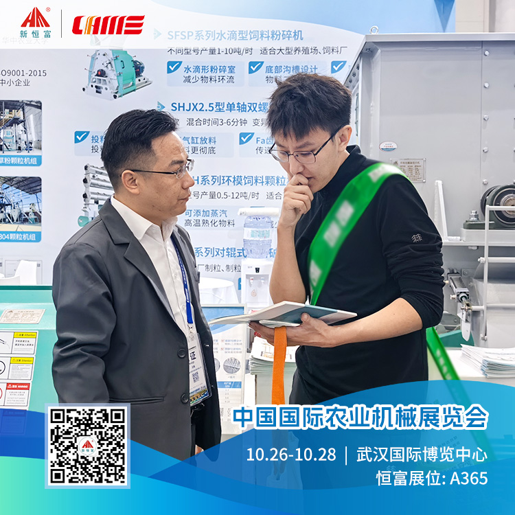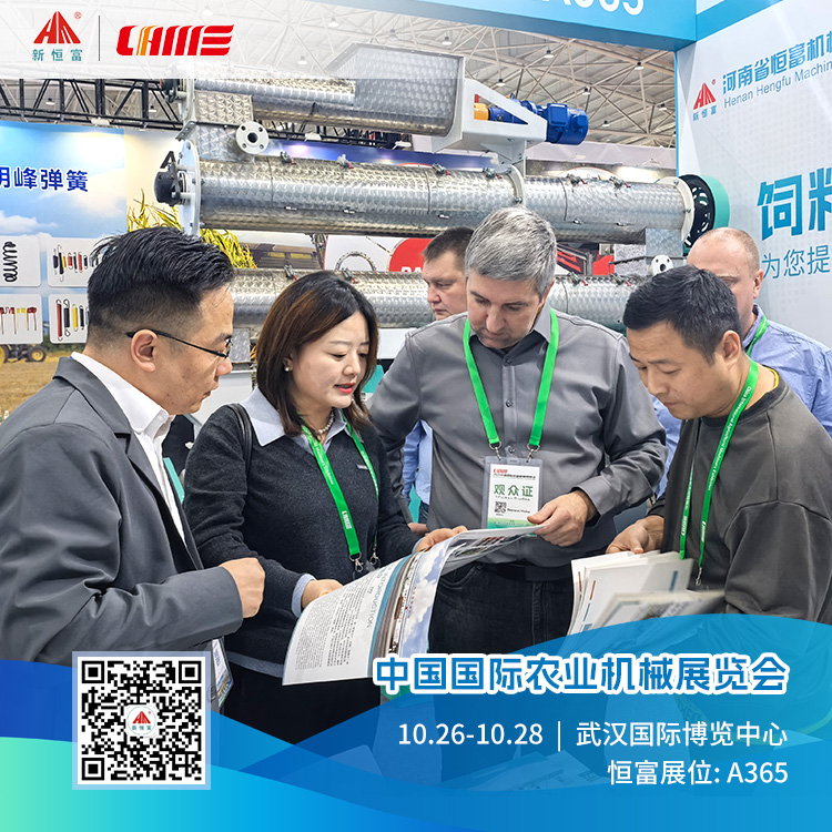 Exhibition Site 展会现场 机器简介 水滴型饲料粉碎机因其粉碎能力强、适用性广,受到饲料生产商和养殖场的关注。其设计能高效处理多种饲料原料,提升生产线产能和灵活性。 机器简介 环模饲料颗粒机以优质出粒效果和紧凑设计受青睐,适用于各类养殖场、饲料加工厂。其高效稳定性能确保颗粒饲料品质和营养价值,改善动物饲养效果。 机器简介 新式预混机相较于传统预混设备,在混合效率、物料适应性、操作便捷性等方面有显著提升,广泛适用于饲料、食品、医药、化工等行业。 向全体成员致以谢意,大家的专业与辛劳值得点赞! 恒富展会回顾 相关新闻 | HENGFUJIXIE 展会新闻 . Expo News [恒富机械]直击广交会现场精彩瞬间!-Exciting moments at the Canton Fair! 【恒富机械】诚邀莅临第138届广交会-Welcome to the 138th Canton Fair 发货新闻 . Delivery News 陕西延安-250型颗粒饲料生产线,装车完成,已发走! 安装新闻 . Installation News 河南恒富机械-成套饲料加工设备安装进度【2025-10-22】 河南恒富机械-成套饲料加工设备安装进度【2025-10-14】 河南恒富机械-成套饲料加工设备安装进度【2025-9-23】 河南恒富机械-成套饲料加工设备安装进度【2025-9-16】 恒富机械一家集生产、科研、销售、安装、售后于一体的实体企业。 如果您有饲料加工方面的需求,点击下方立即咨询~